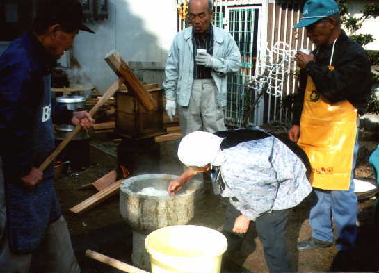 毎年暮れには近所の方がボランティアで餅つきをして下さいます。