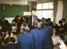神辺西中学校で、このほど、「ふれあい教室」が設けられ、地域の人々と生徒たちとのあたたかい交流の場となっています。