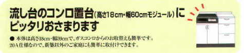 本体は高さ18cm・幅59cmで、ガスコンロからのお取替えも簡単です。