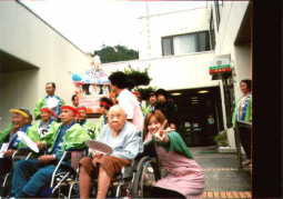 お年寄りを中心にいろいろな方が来るところです。スタッフの方が、来られた方の手伝いをしています。食事はもちろん、お風呂にも入れてくださいます。介護を必要としている人の役に立ちたいと思い、あしたばの家を開いたそうです。風船バレーなど楽しくリハビリをしたりしています。スタッフの方もやさしく「おはよう。ありがとう。」あいさつが一番うれしいです。