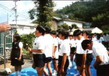 ![]() 風船バレーをしています。 |