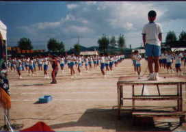 PTA参加の競技で、さる、牛、カッパ、たぬきのきぐるみを着た先生が色分けされたかごを背負ってクランドを逃げまわり、保護者は自分のクラスの色以外のかごの中に、玉をいれる競技と、PTAのリレーに、私も参加しました。何年ぶりかで走ったので足が、もつれてこけそうになりました。子どもの競技を見るだけじゃなく、参加するのも楽しいものですね。最後に、神辺で昔から受け継がれている、「二上がり」を編曲して作った、「西中 ザ・ニ上がり」を生徒全員が真剣に踊る姿を見て、とても感動しました。全国的なニュースになった西中ですが、「みんないい生徒ばかりだよ。こんなにいい学校だよ」と胸を張って皆に言いたいぐらいです。私にとって今日は本当に良い1日でした。