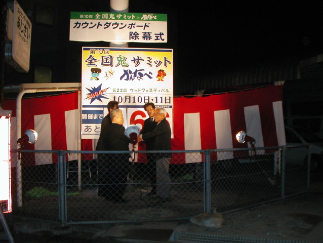 平成15年10月10日(金)神辺町商工会2階において、一年後に行われる、全国鬼サミットのカウントダウンセレモニーが行われました。