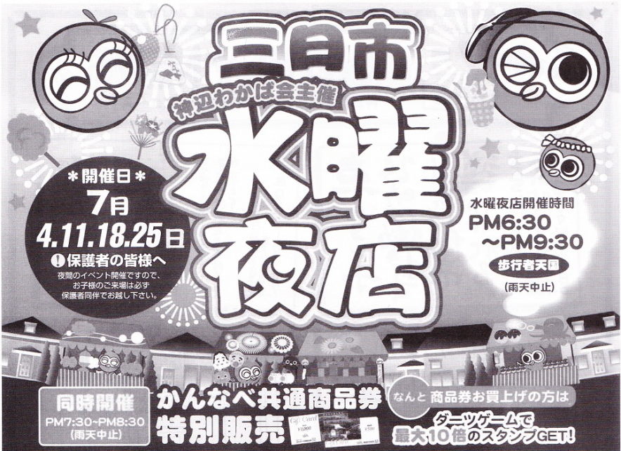 毎年7月の水曜日に神辺の三日市通りで夜店が行われます。